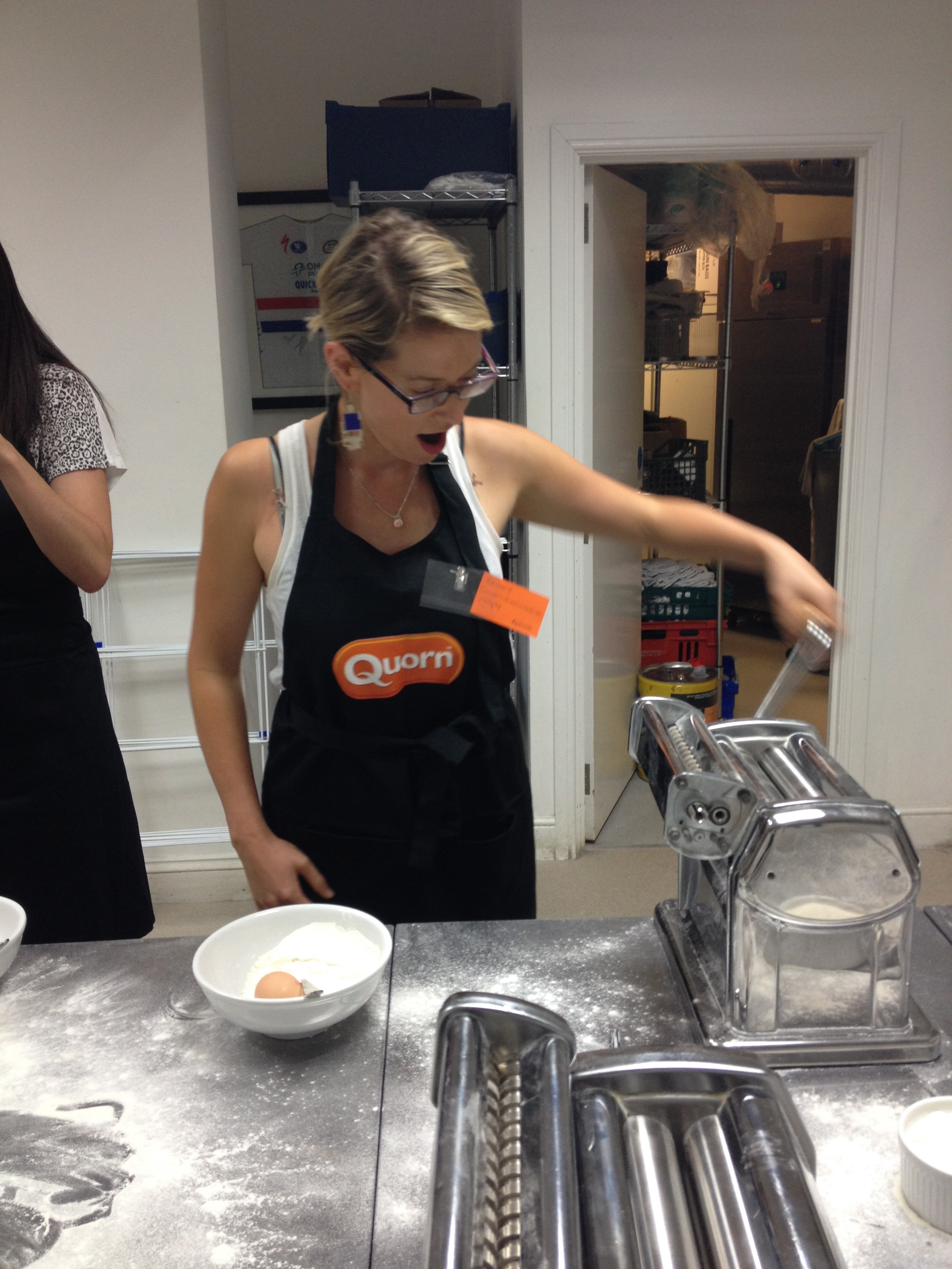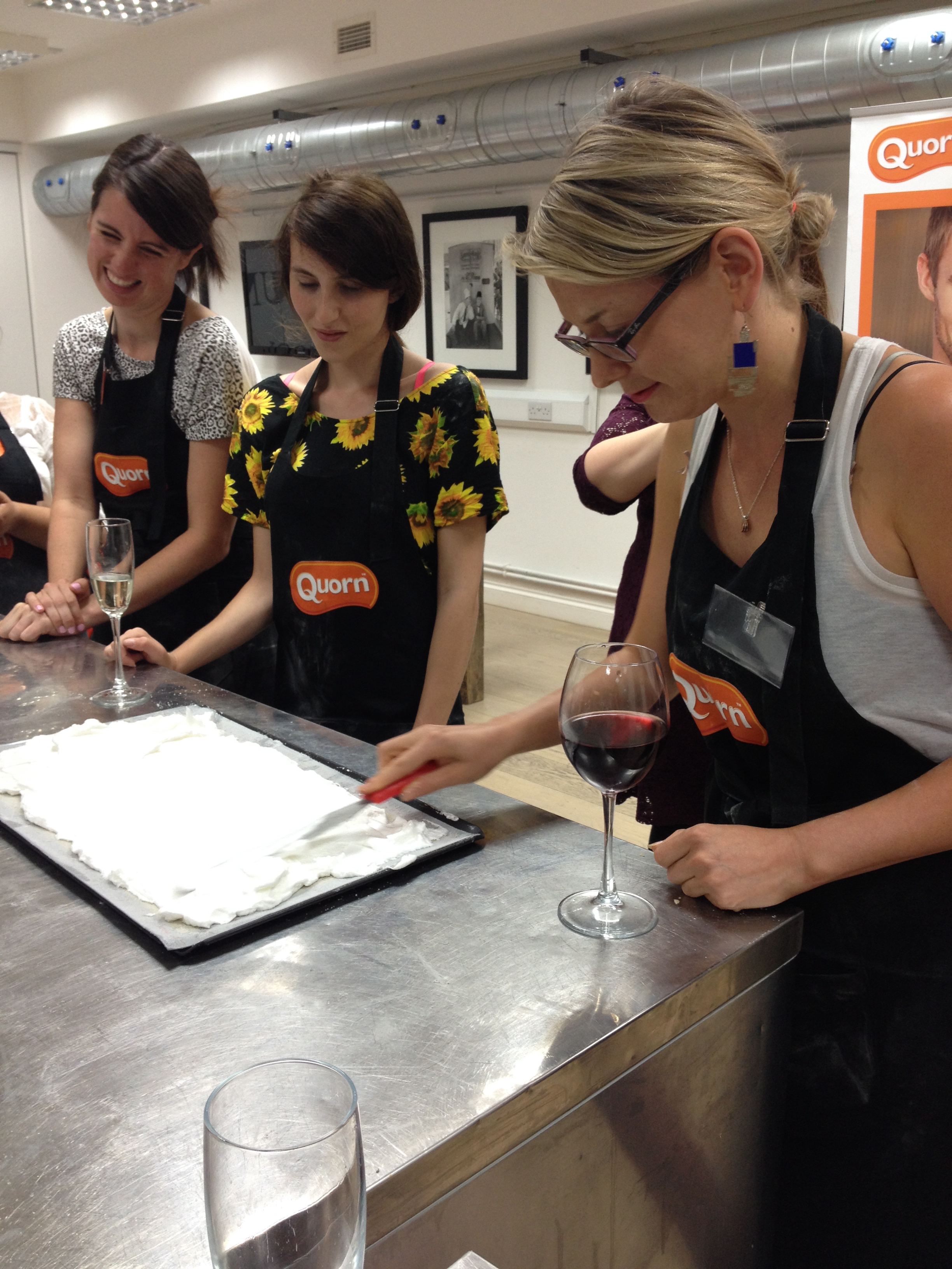 We left our pasta air drying in one corner and moved on to the next station: cooking with Quorn.