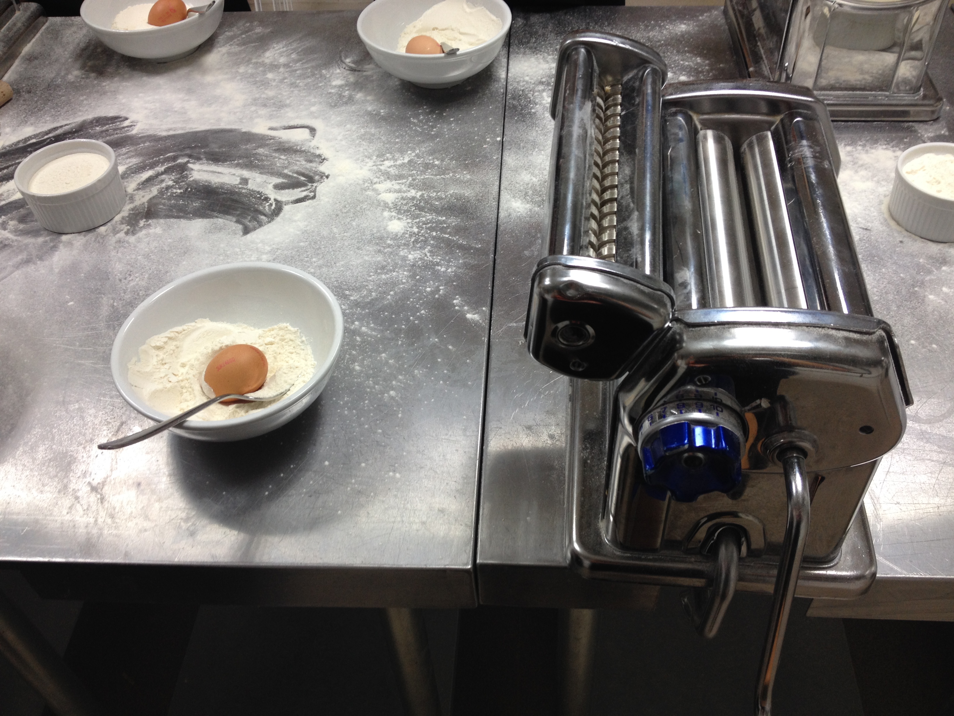 I’d never actually made pasta from scratch before so Bryony and I were eager to try this out first. All the stations were prepped for our arrival, but before we got down to business we had to have a few pictures taken of us in our aprons, of course.