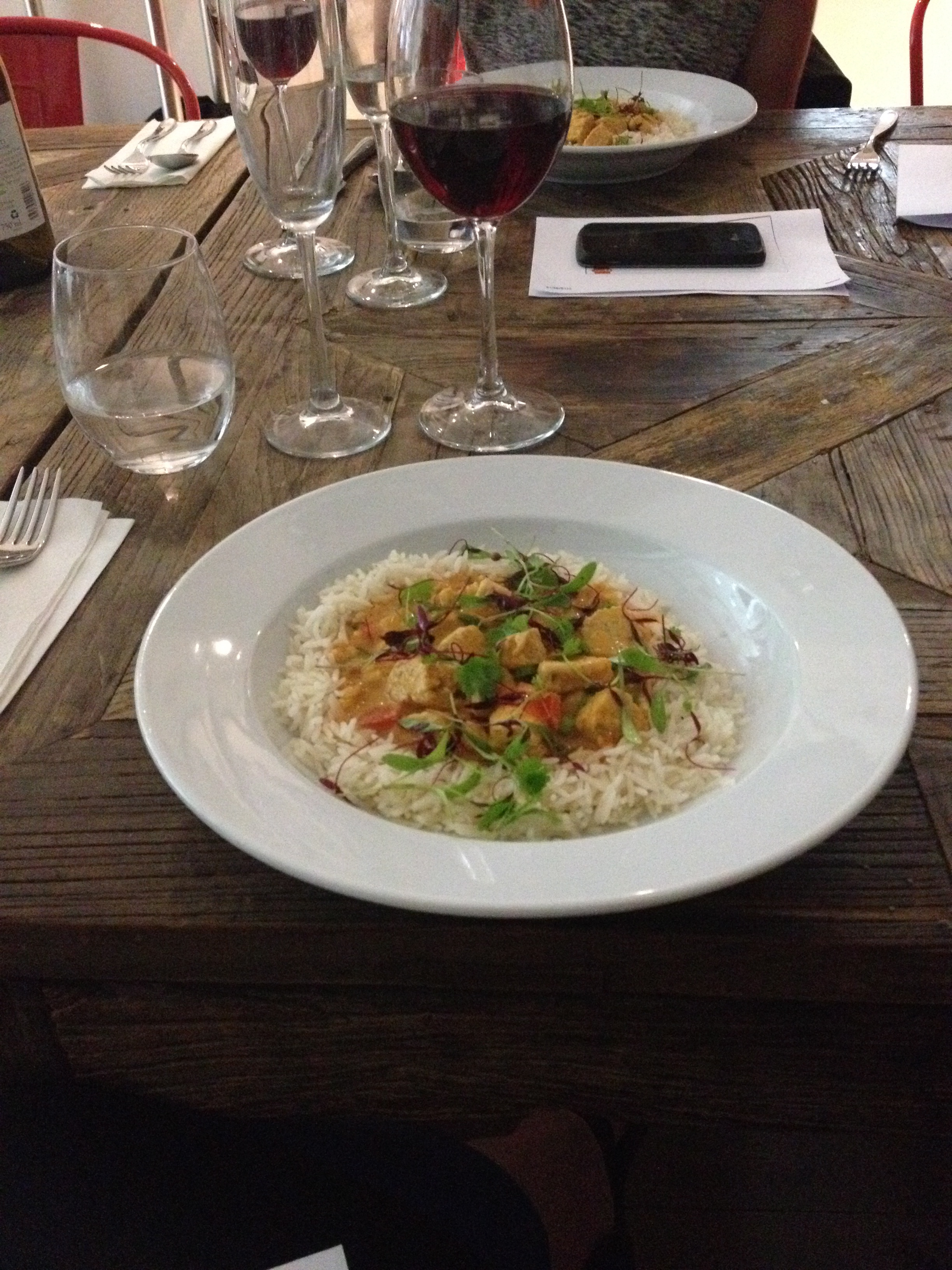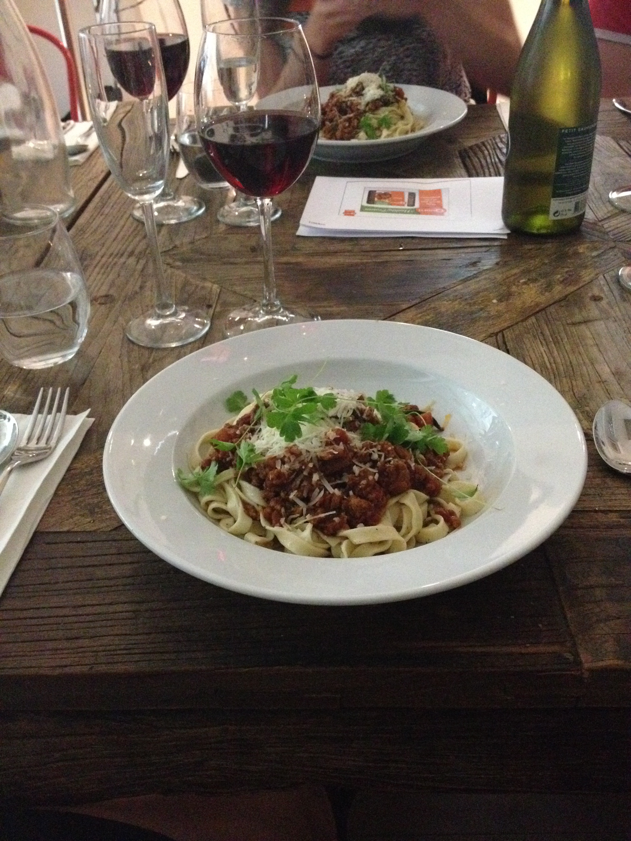 Once all the ingredients were ready, we were ushered to the table to try our hand-made creations. For starters we had Quorn mince with linguine. Quite a large portion for a starter but after all out hard work (and quite a few glasses of prosecco) it was very welcome. In short, it was delicious. I am actually already quite a big fan of Quorn, the benefits of living with a vegetarian, so the taste of it in different dishes is something I am quite used to. This was a slightly spicy and herby version of a Bolognese and I could honestly say I would have chosen it over a meat version.
